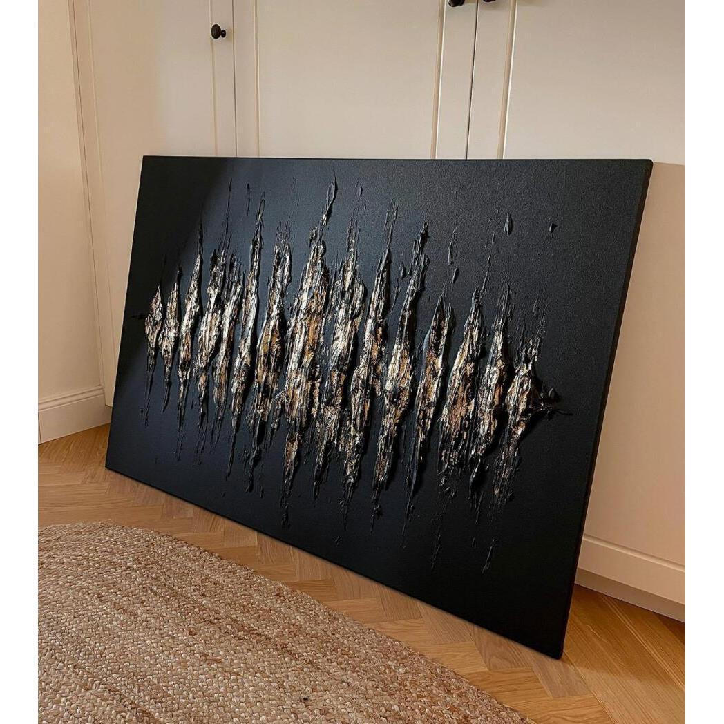 純粋な手描きの油絵ブラックゴールド立体テクスチャ装飾絵画わびさびスタイルリビングルームソファバナーデザイナーミニマリスト吊り絵画