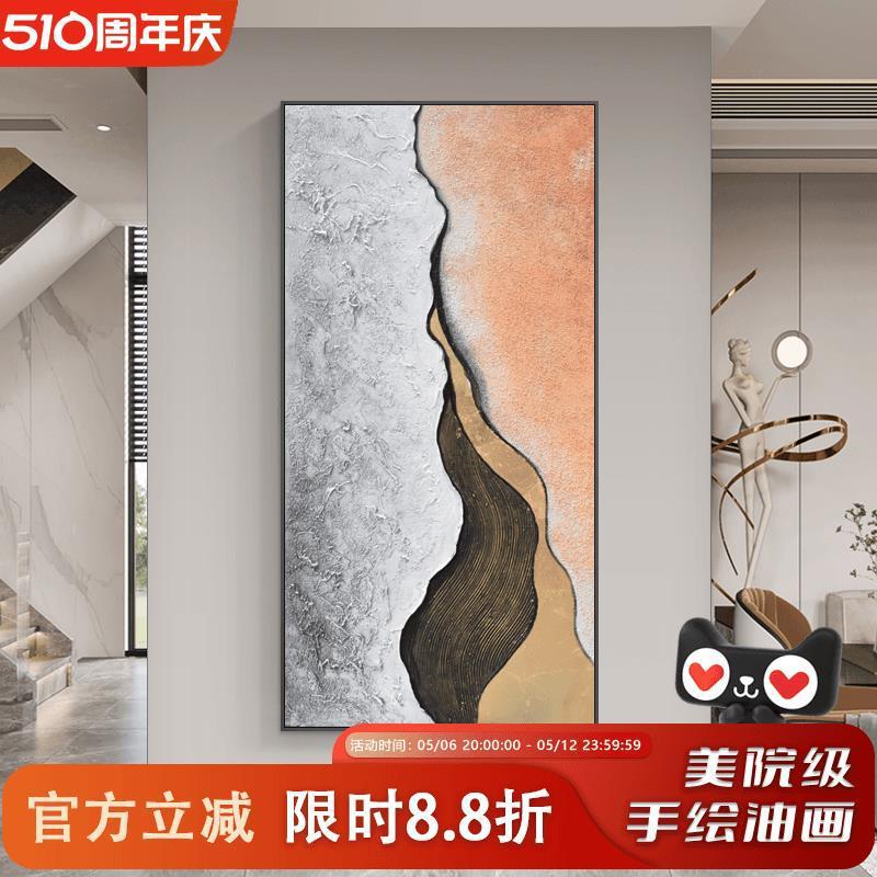 わびさびスタイルイタリアンライト高級純粋な手描き油絵モダンシンプル抽象吊り絵画ハイエンド玄関通路装飾絵画