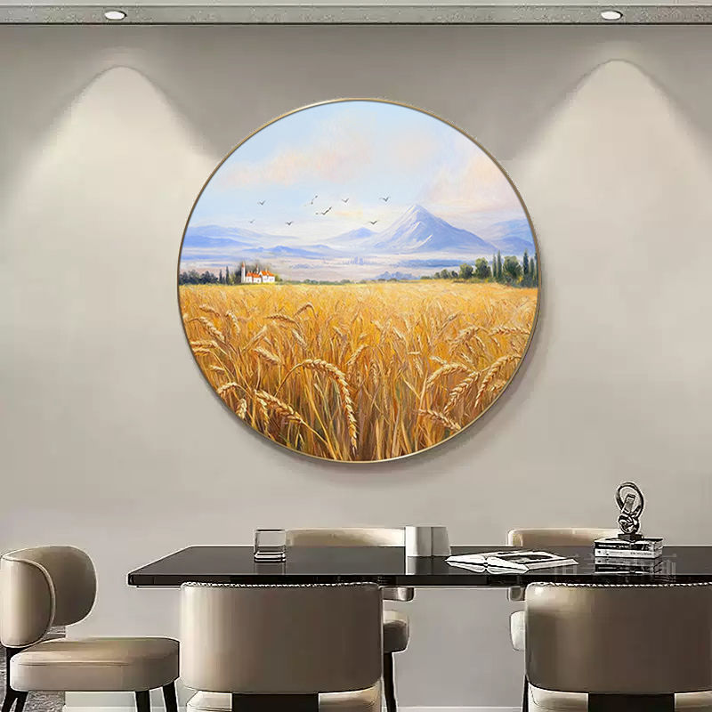 Suisui Ping An ラウンド玄関吊り絵画収穫小麦穂雰囲気レストラン装飾絵画抽象的な質感のリビングルームの壁画