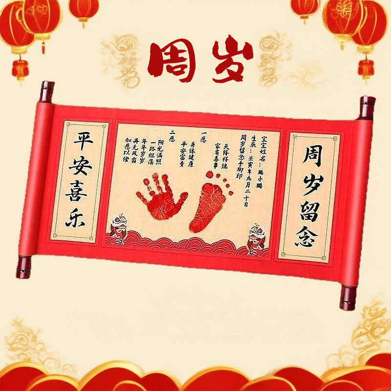 満月百日赤ちゃんの足跡巻きの記念品新生児赤ちゃんの足跡満月一歳プレゼント