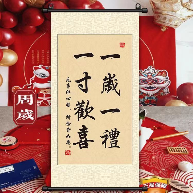 新しい中国風の赤ちゃんの1歳のギフト、1歳のギフト、スクロール吊り絵、誕生日名プリント、子供の写真撮影小道具