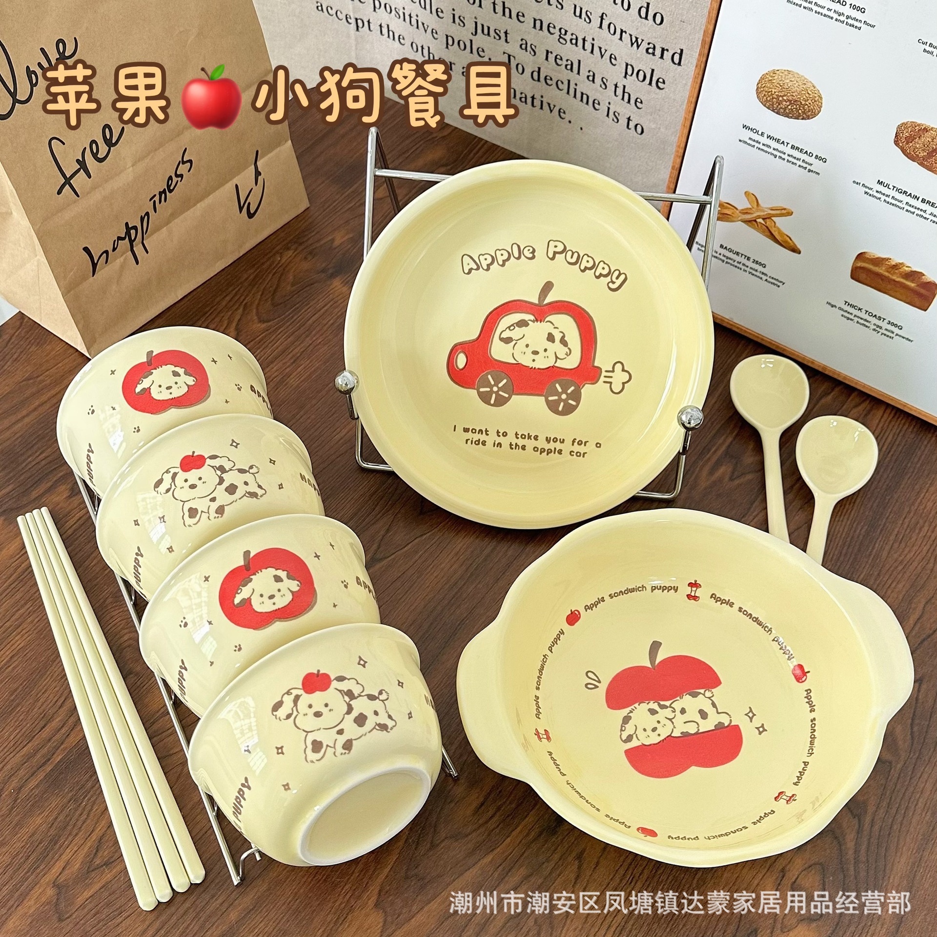 りんごの子犬かわいいins高颜値食器家庭用セラミック食器スプーンセット茶碗皿釉薬クリスマス