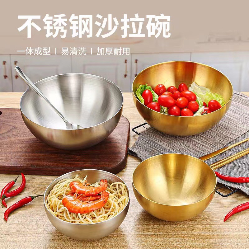 ステンレスの韓国式サラダ碗の単層の冷麺の碗の金色の家庭用の泡の碗の麻の辛い熱いスープの碗の韓国料理の碗