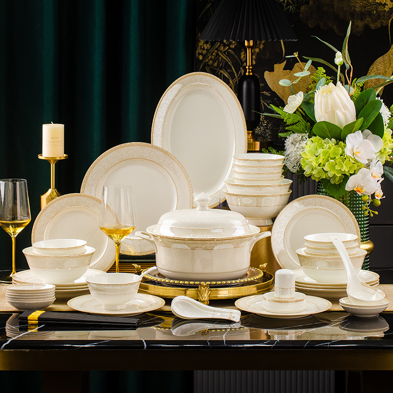 景徳鎮高温セラミック健康安全無毒釉薬ボーンチャイナ食器セット、新築祝いギフト