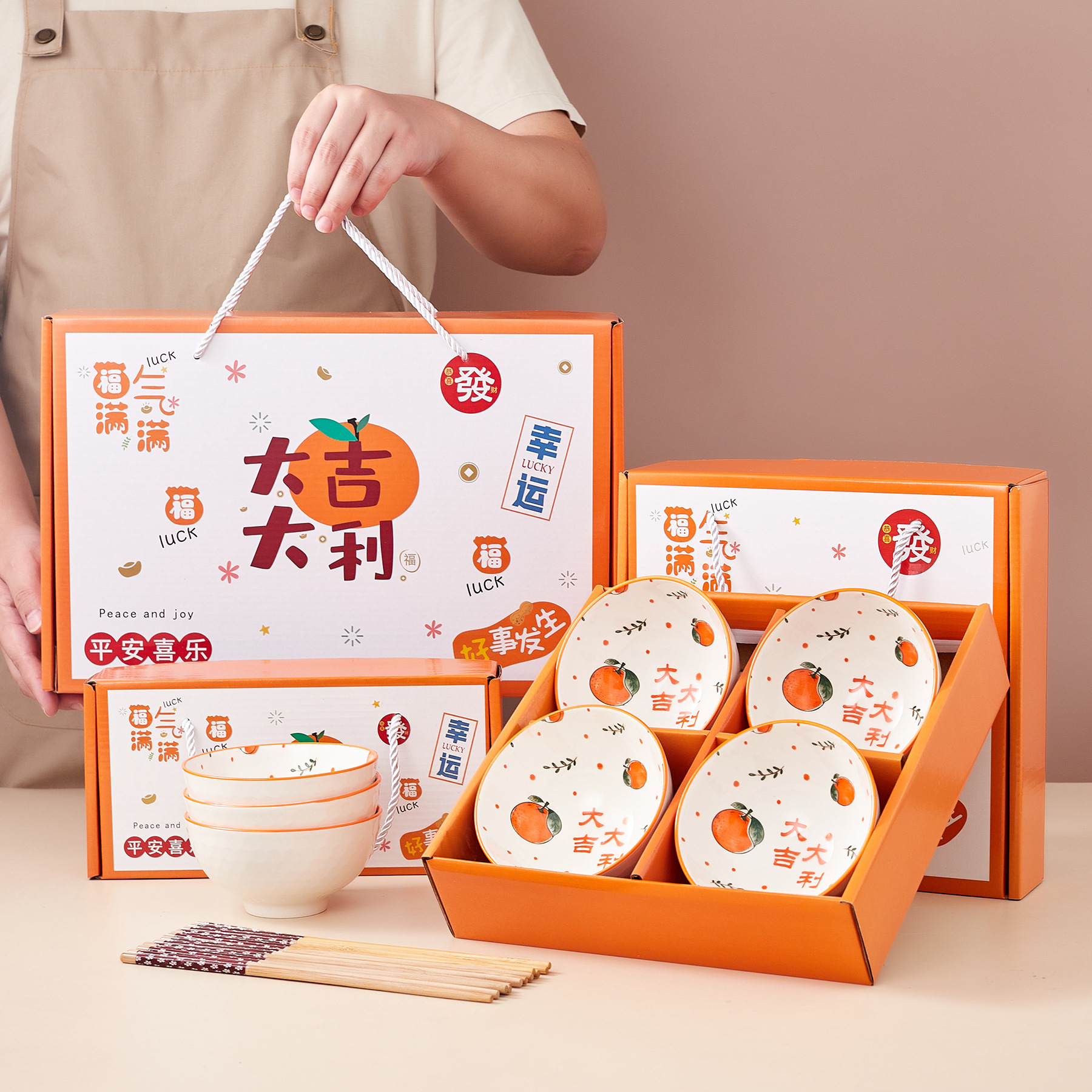 幸運セラミックボウルと箸ギフトボックス家庭用食器クロスボーダー丼ボウルセット実用的な小さなギフトボウル卸売