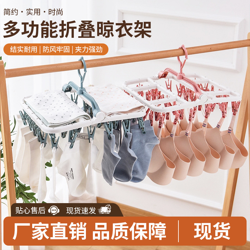 多機能靴下ラック折りたたみ物干しハンガーバルコニー寮防風マルチクリップ下着ベビーディスク物干しラック