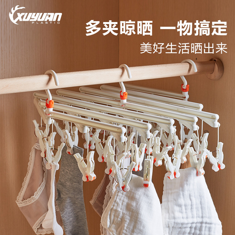 ハンガー多クリップ靴下ハンガー赤ちゃん家庭用干し下着下着折り畳みハンガー防風神器