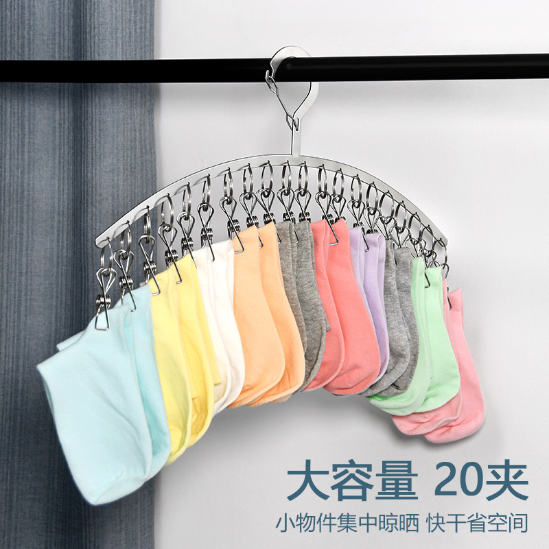 多機能衣類乾燥ラック、学生寮や家庭用、20個のクリップ付き、曲線型、ソリッドステンレス製の靴下クリップ