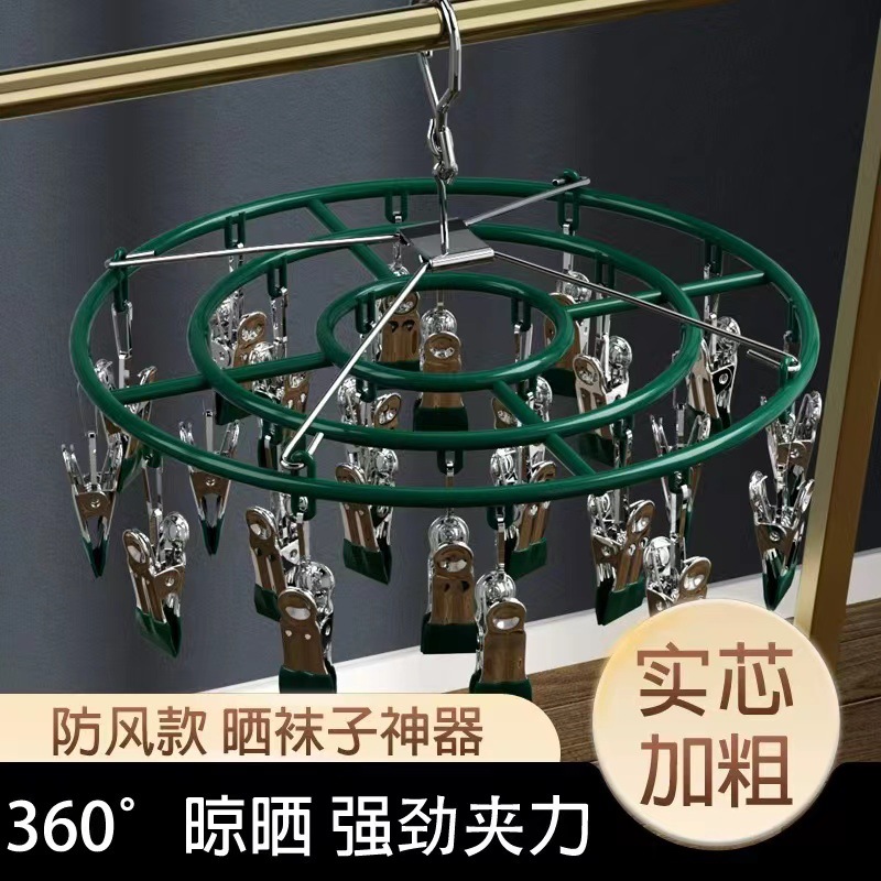 ハンガー靴下クリップ家庭用学生寮多機能干し神器ステンレス浸塑無痕靴下ラック多クリップ