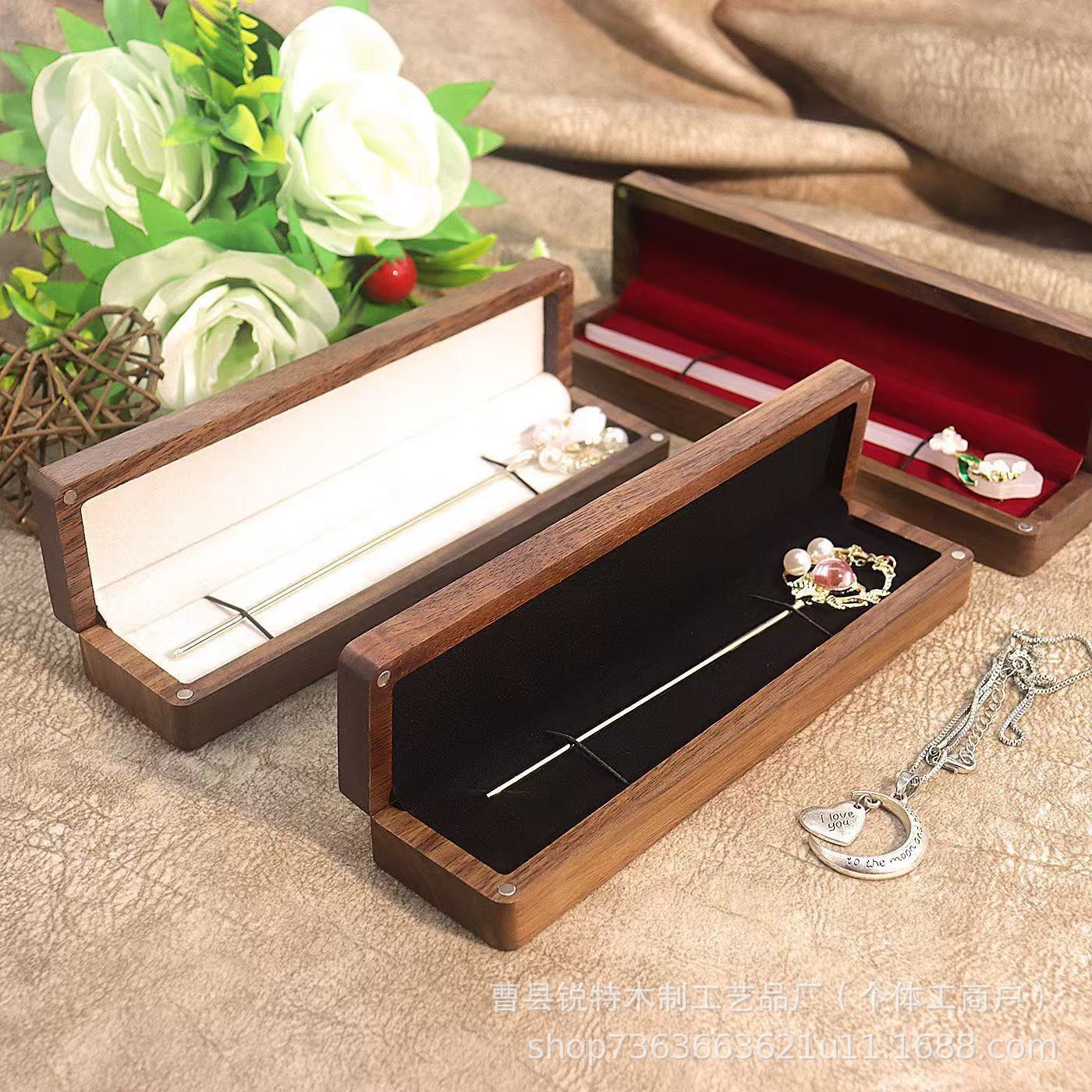 木造の黒い胡桃のネックレスの首飾り箱の包装箱は簡単にかんざしのイヤリングのブレスレットの包装の礼箱のペンの箱の女性です。