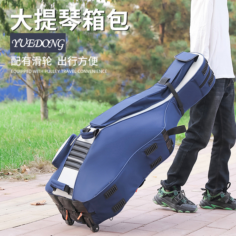 チェロのチェロのチェロのバッグはローラーの滑る車輪のチェロのバッグを持っています。