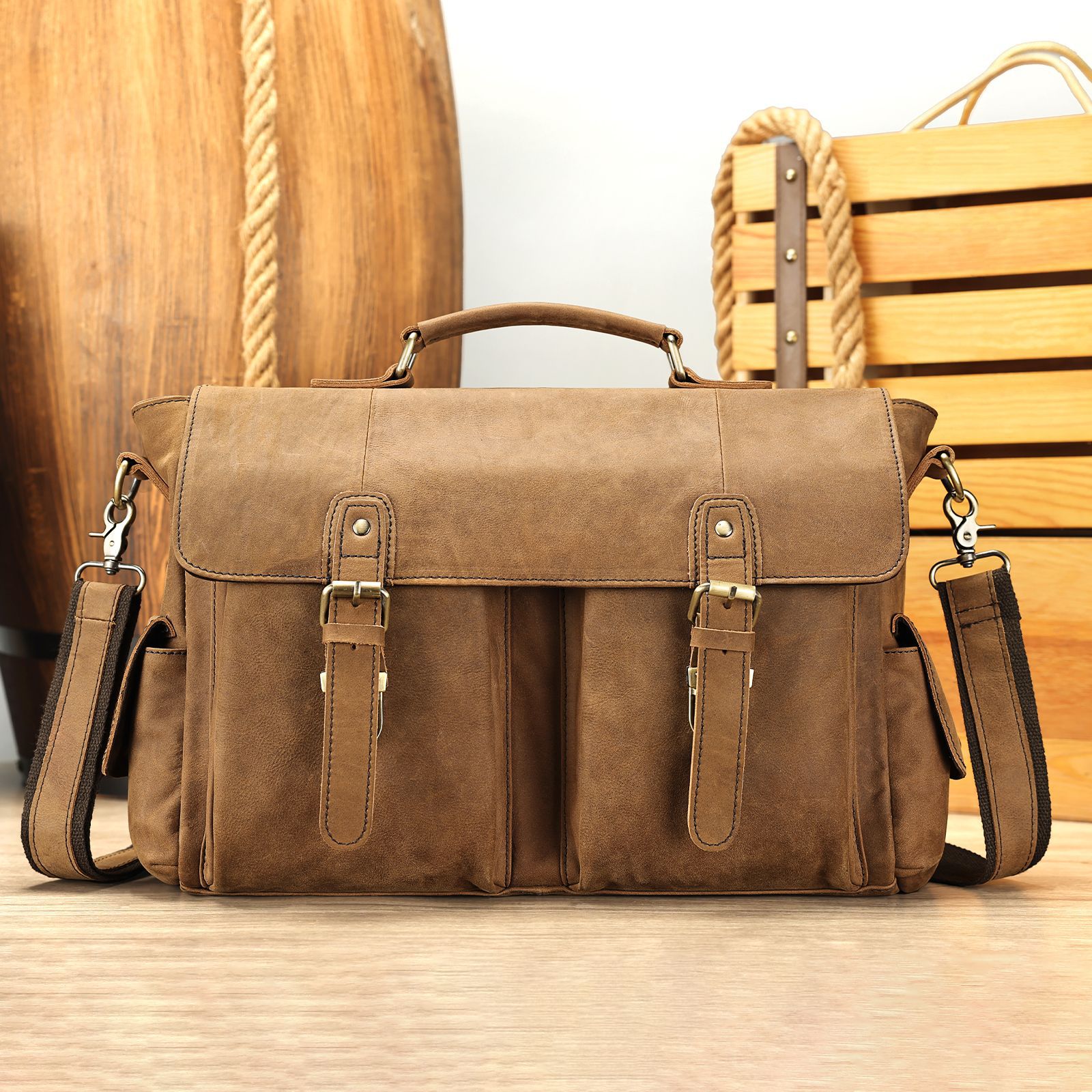 男性本革ブリーフケースレトロ狂馬革ハンドバッグ通勤パソコンバッグシングルショルダーバッグ