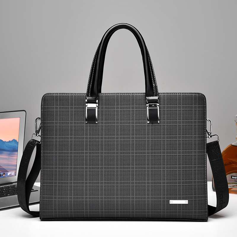 男性のビジネスハンドバッグのバッグファッションはシンプルで、ショルダーバッグのファッションの横の手にパソコンのブリーフケースを持っています。