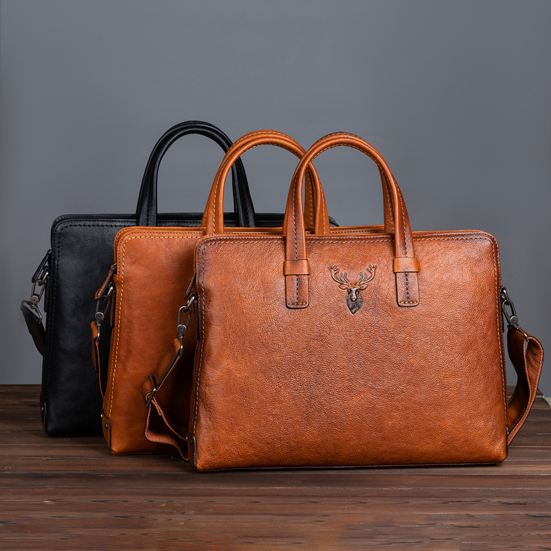 簡単タイプの潮版植なめし牛革レトロカジュアル男性ブリーフケースカジュアルバッグパソコンバッグ
