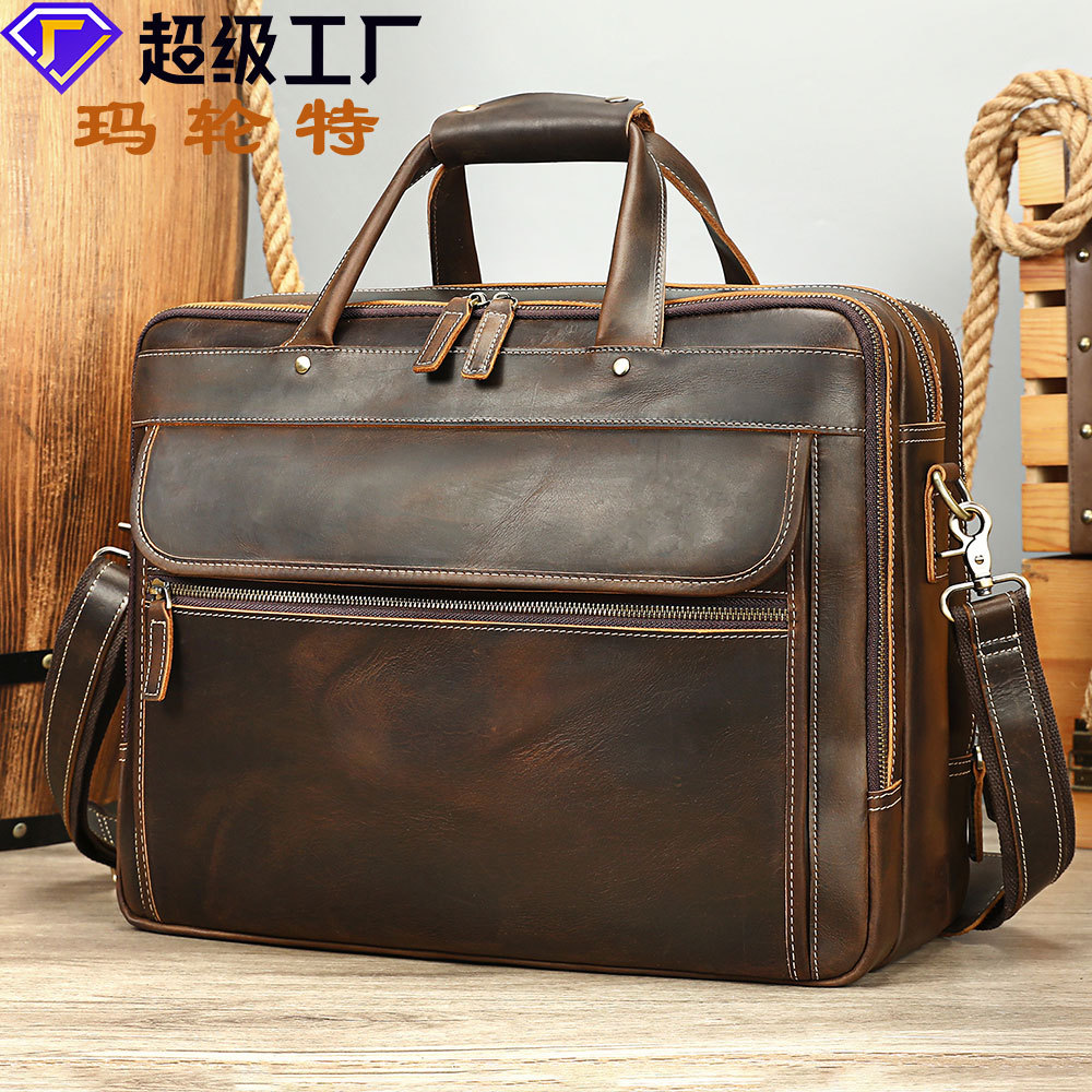 マーレット男性狂馬革ハンドバッグビジネス旅行ブリーフケースレトロ大容量牛革男性用パソコンバッグ