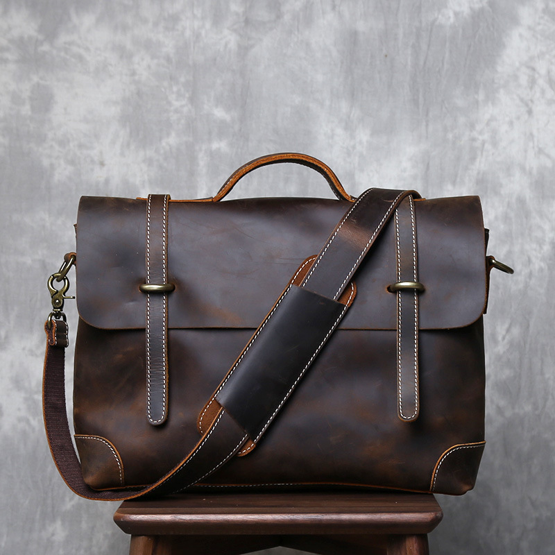 男性の本革のブリーフケースの横型の斜めショルダーバッグのレトロなトップ層の牛革の郵便配達のハンドバッグの手作りの馬の皮の男性のカバン