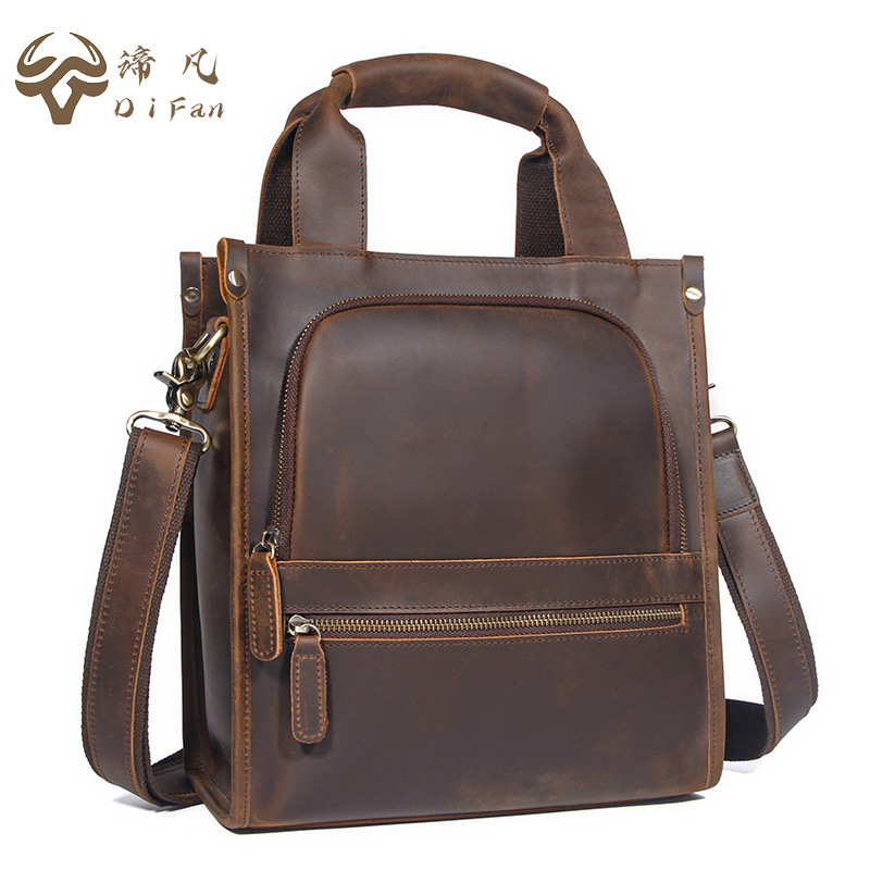 新型国境を越えたレトロな狂馬皮縦型アウトドアキャンプのトップ層真皮ショルダーバッグ男性