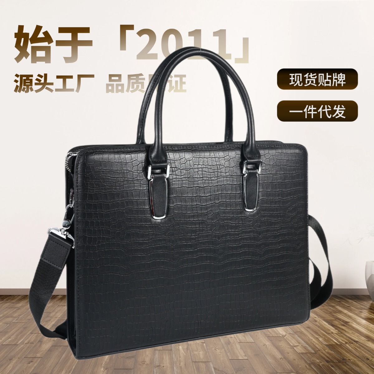 クロスボーダー新作ノーブランド一層牛革メンズブリーフケースクロコダイル柄ビジネスバッグノーブランドポータブル2024新作