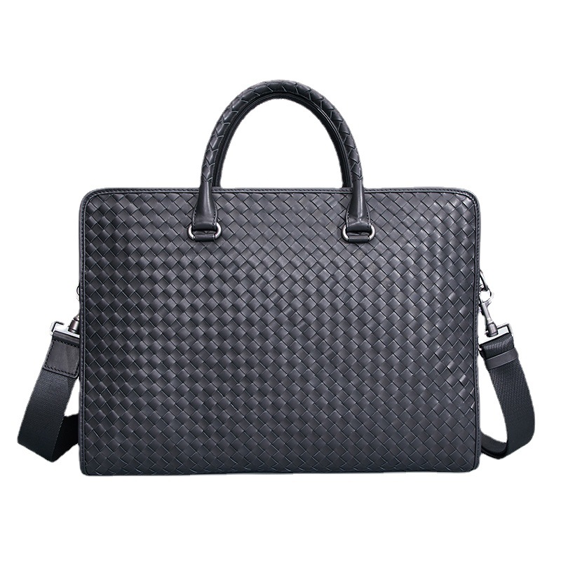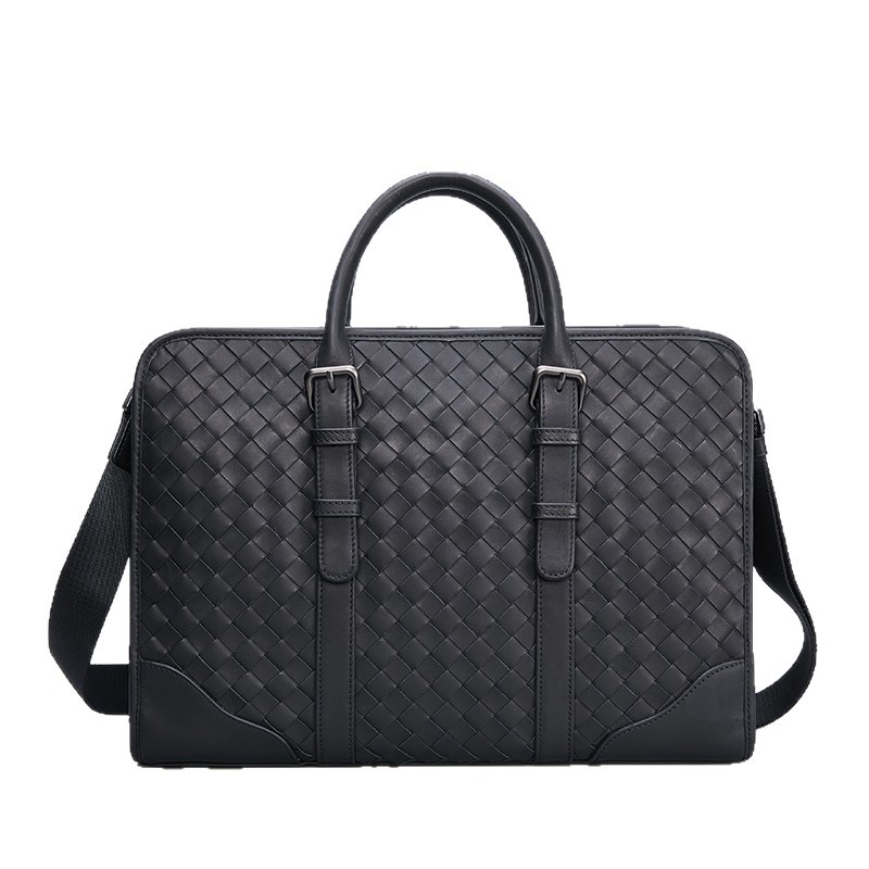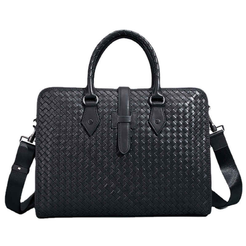 新商品の本革男性用バッグ編みビジネス男性用ブリーフケースシンプル大容量パソコンバッグトップ層牛革ハンドバッグ
