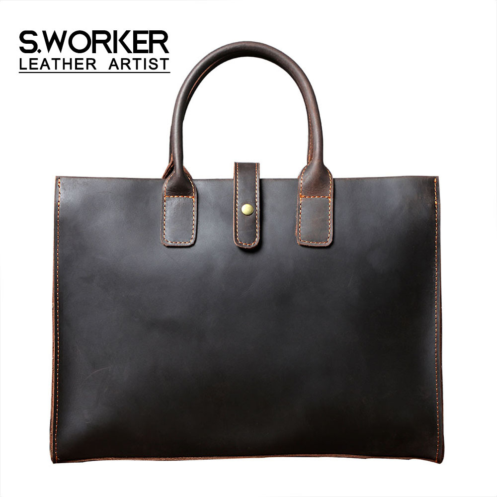思沃レトロ本革ハンドバッグメンズビジネスコンピュータバッグトップ層牛革ブリーフケースシングルショルダーバッグ