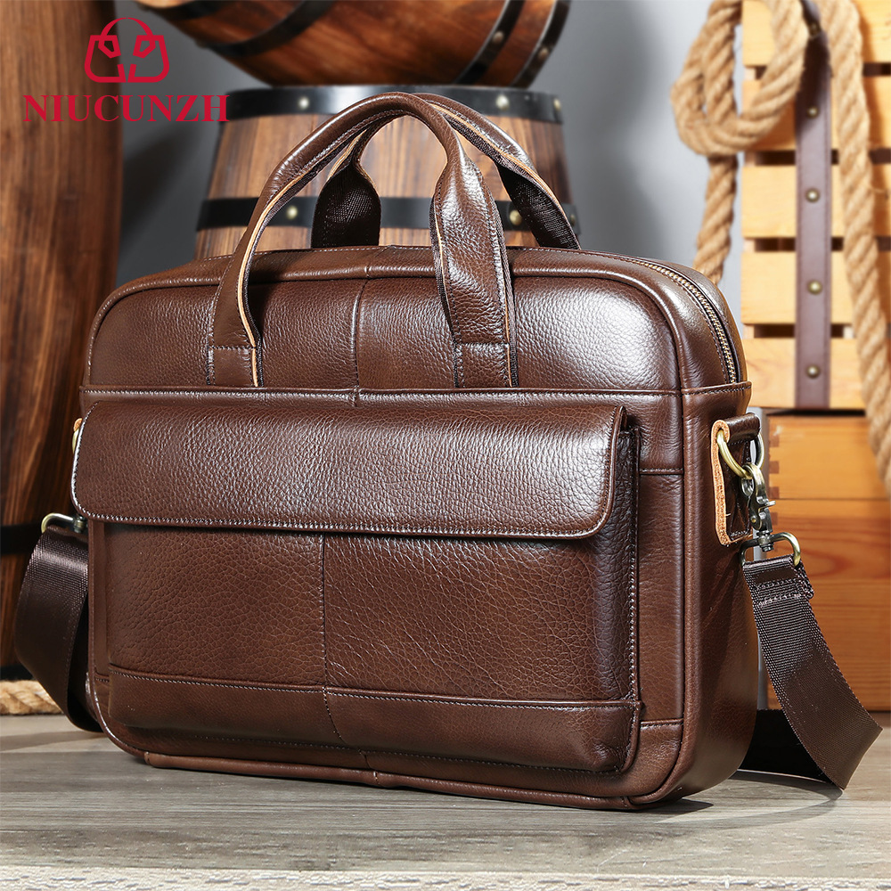工場カスタム男性ブリーフケースのトップ層牛革ファッションシンプルなビジネスバッグ14インチトレンド男性バッグ