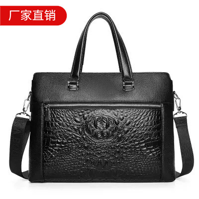 ワニ紋男性ブリーフケース真皮14インチ手提げノートパソコンバッグ横型牛革ビジネスバッグ工場