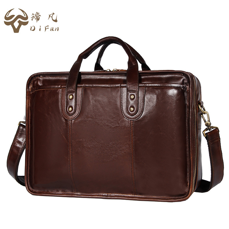 欧米のレトロな男性ブリーフケース本革手提げ男性カバンビジネスバッグトップ層牛革オフィスバッグ15インチパソコンバッグ