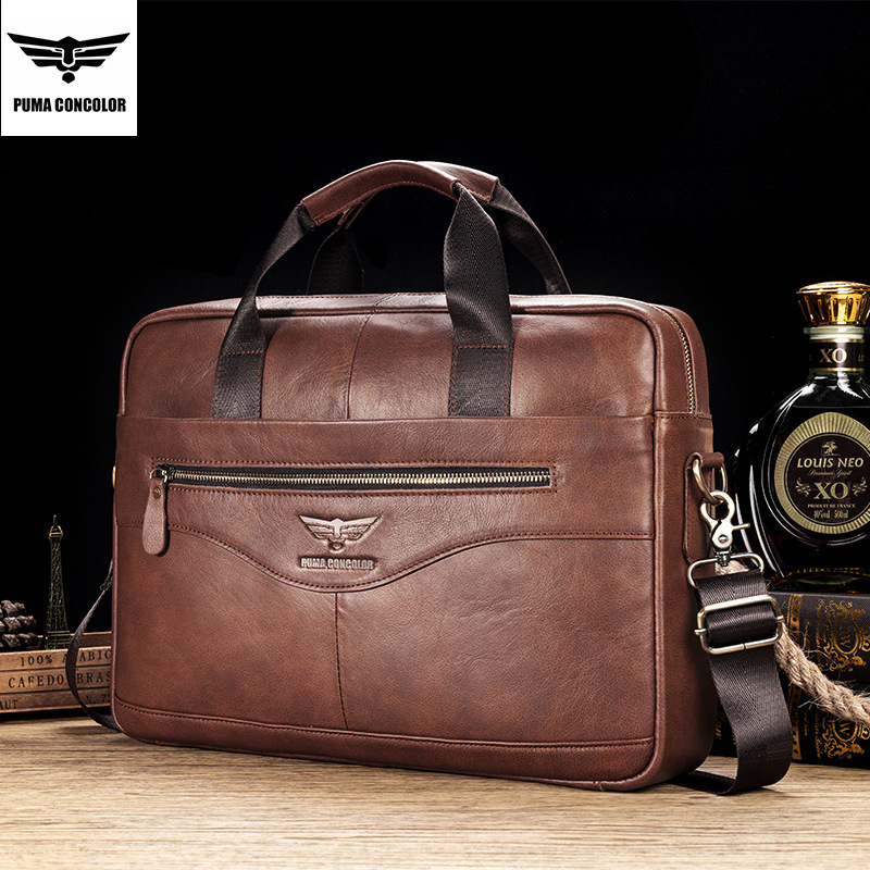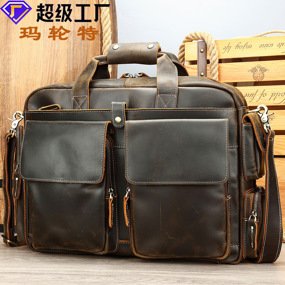 マーレットレトロ本革メンズハンドバッグ高级感トップレザー防水17インチ片肩狂马皮ブリーフケース