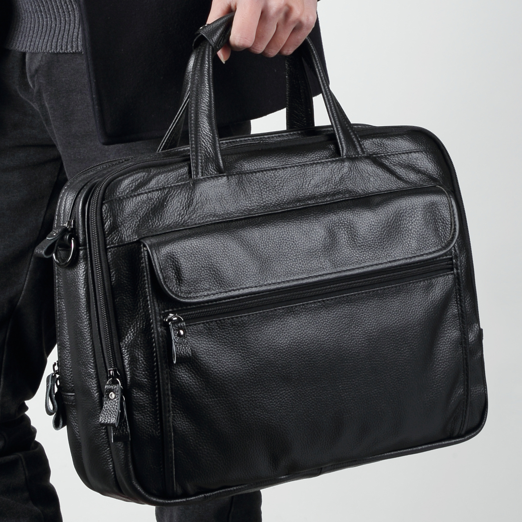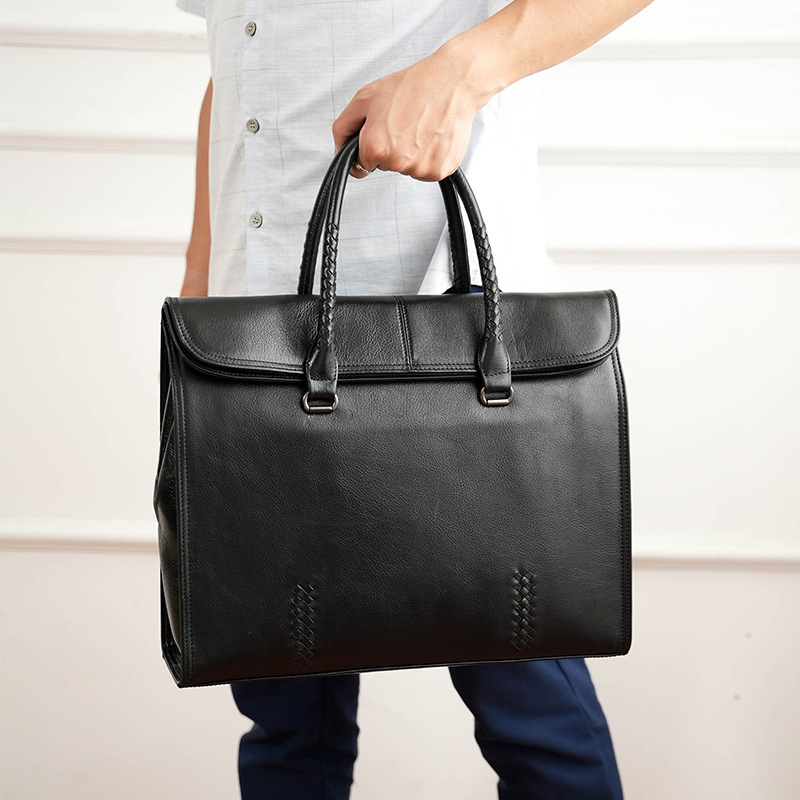 手提げノートパソコンかばん2023春新品pu革ファッションシンプル高级ブラックメンズハンドバッグかばん