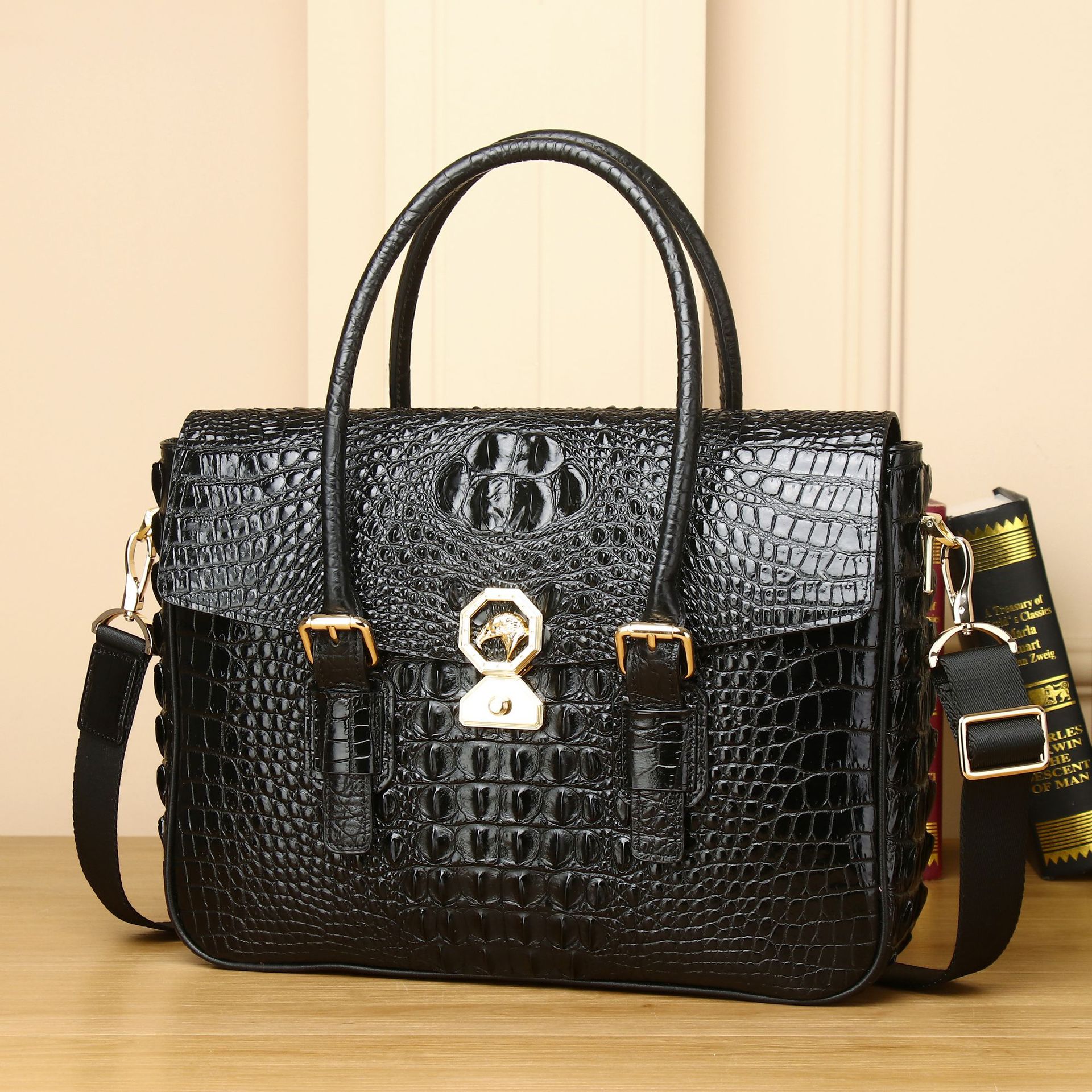 W宝龍ファッション男性用ブリーフケース大容量ビジネス本革バッグ通勤ビジネス多機能男性用ハンドバッグ