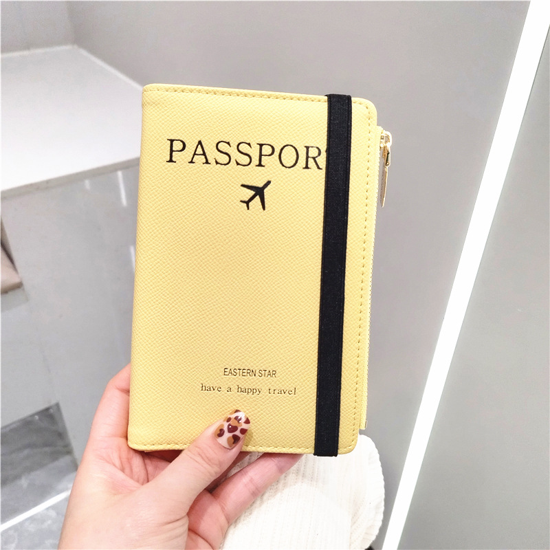 韓国のシンプルなrfidパスポートは純色のかわいいジッパーのカードを包んで航空券の磁気防止puのパスポート保護カバーを包みます。
