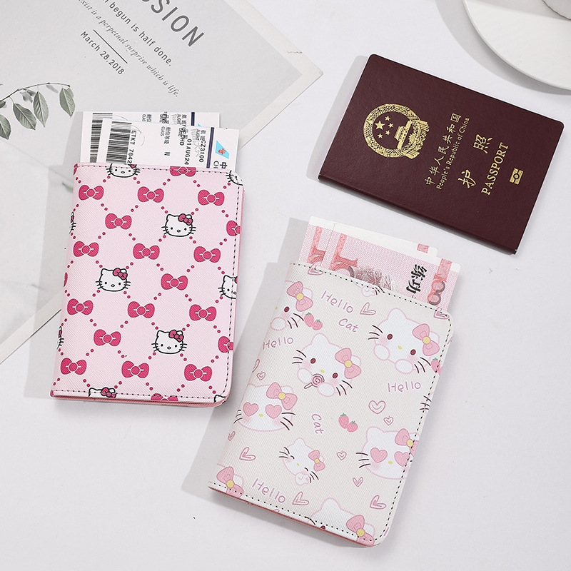 クリエイティブピンク猫パスポートバッグ漫画海外旅行証明書保護カバーパスポートクリップ航空券旅行証明書セット