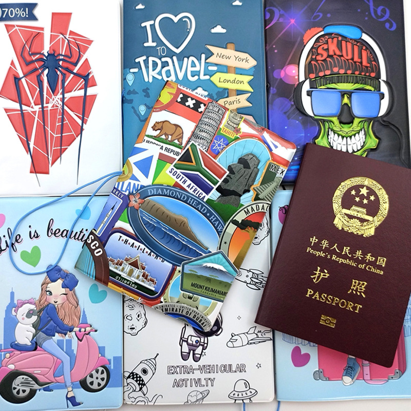 5682 かわいいエンボス加工漫画パスポートブック海外カードホルダー保護カバードキュメントバッグ収納袋旅行パスポートホルダー
