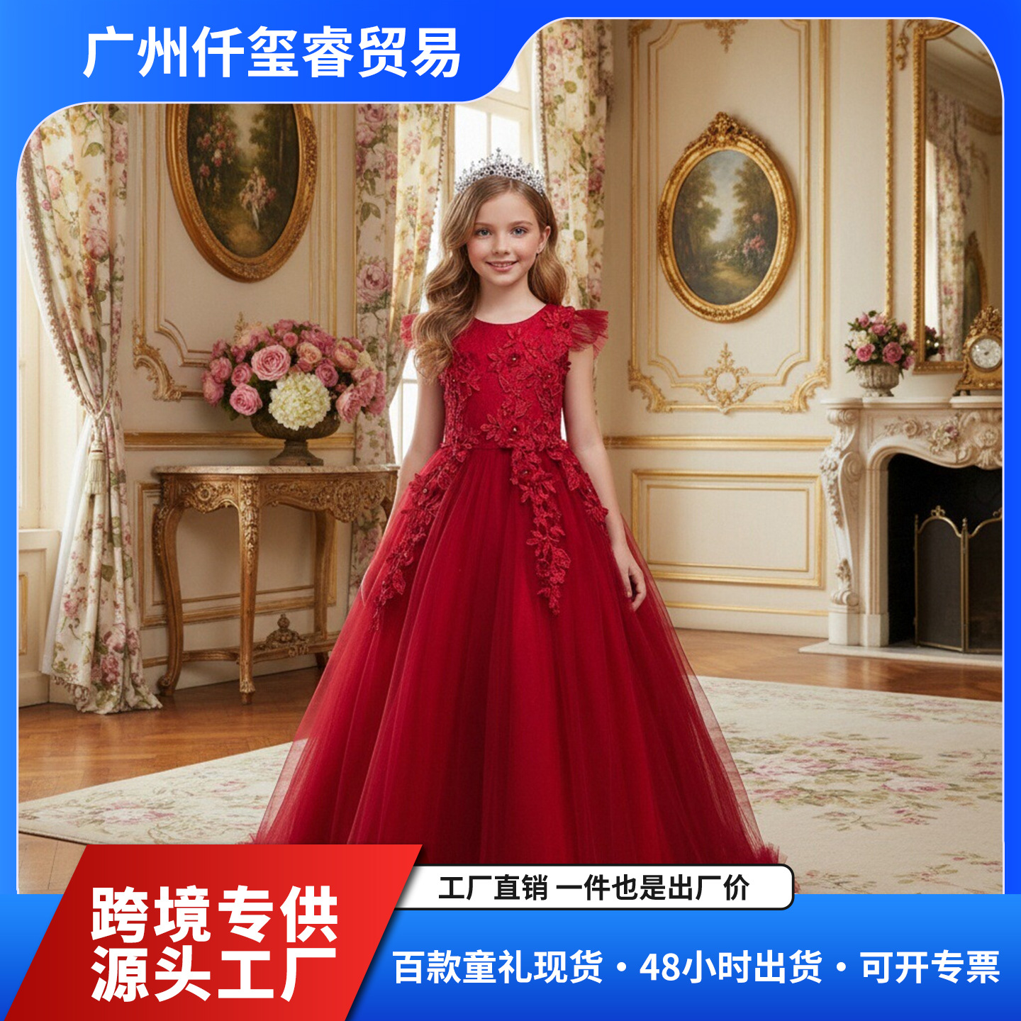 クロスボーダー子供ドレスウエディングドレスクロスボーダープリンセススカートレディース演出レースワンピースガールズドレスワンピース