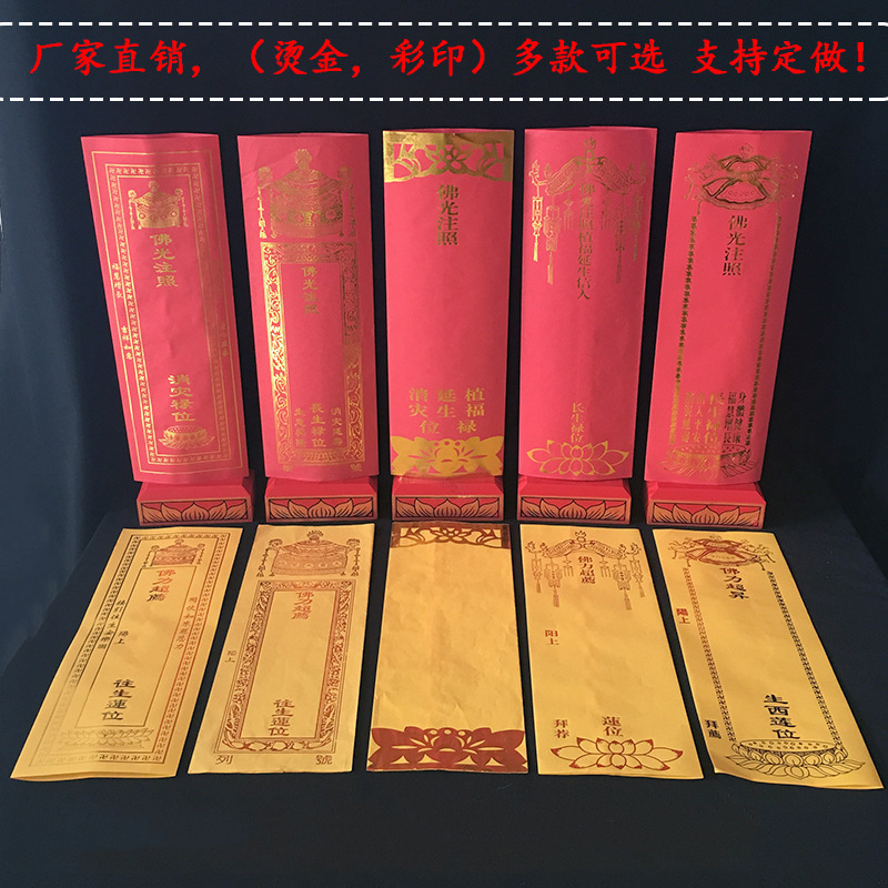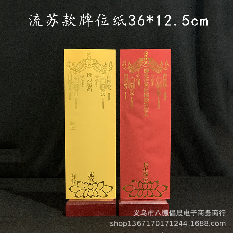 36x12.5cm二重封筒紙二重牌位蓮花順位セット寺院赤黄色法会牌位紙