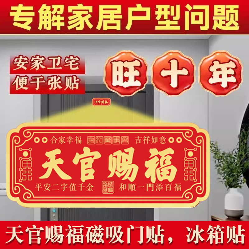新作軟磁性天官祝福ドアステッカー、玄関用平安ステッカー、横型祈願飾り、磁気吸着式、設置不要、富を呼び込む