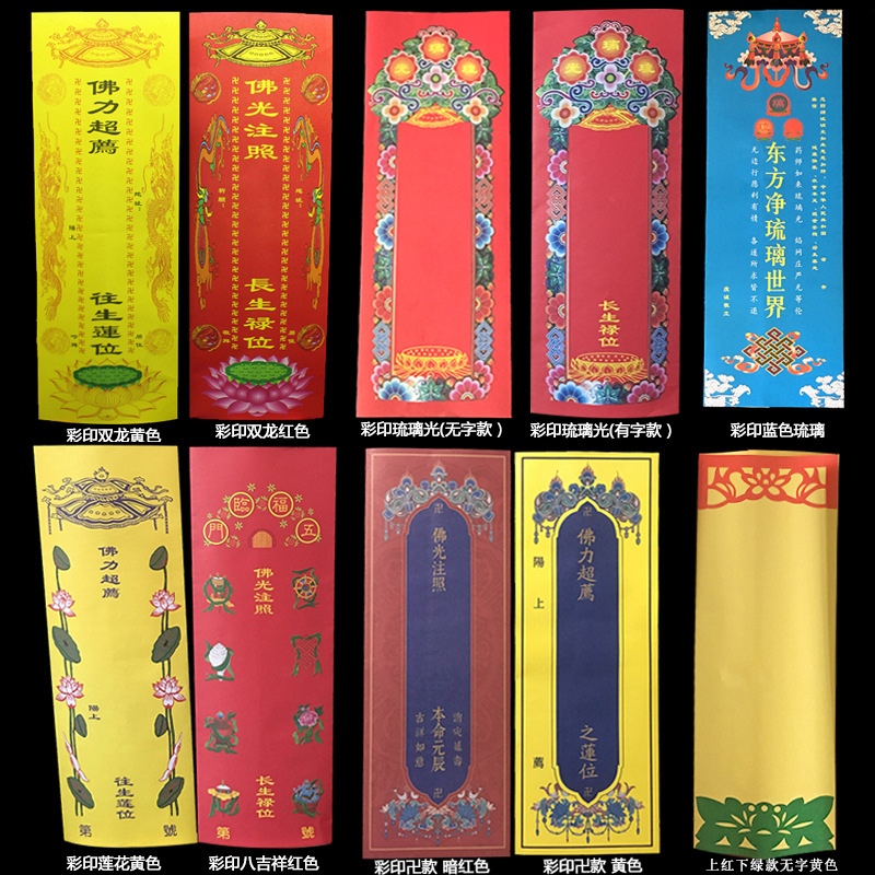 36*12.5cmカラー印刷二重牌位紙双龍瑠璃光信封止蓮のお寺牌位
