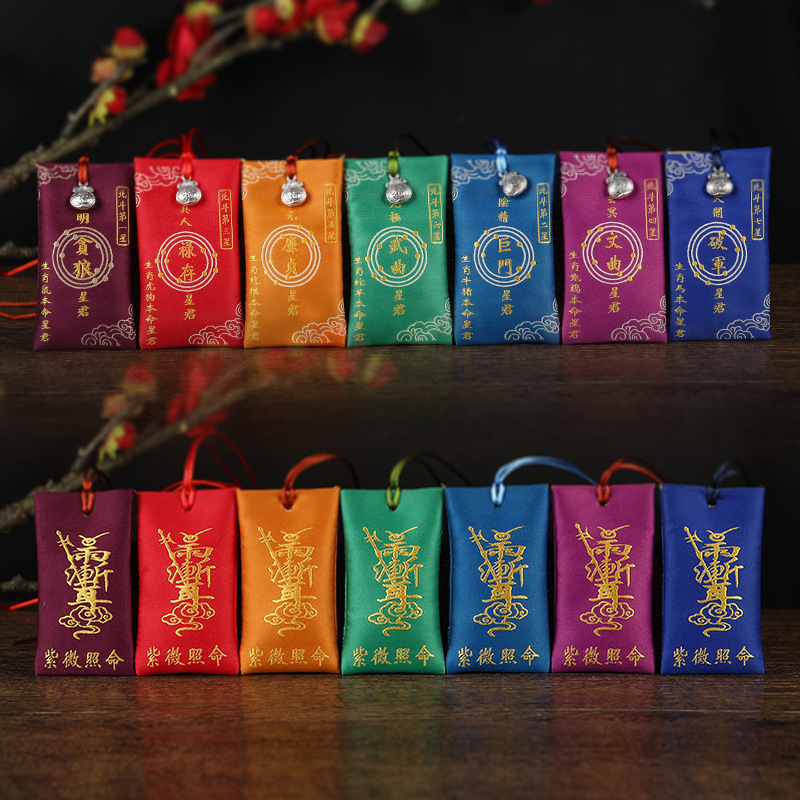 紫薇、北斗七星、干支守護聖人、福袋、太歳錦袋、八卦袋、道教ギフト袋ペンダント