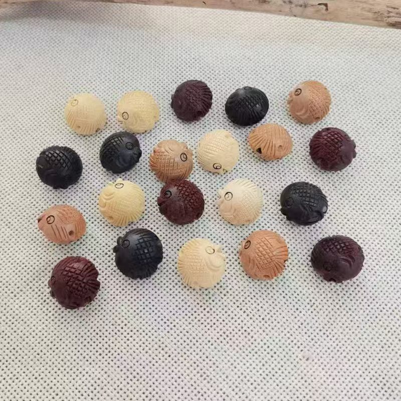 黄楊黒檀血檀桃木手作り彫刻小魚部品diyアクセサリーペンダント