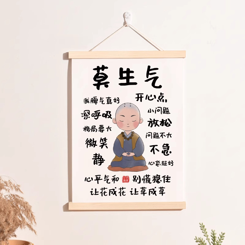深呼吸して怒らないでください、装飾画、感情をコントロールして安定させます、巻物吊り絵、よく話す、書道と絵画のヒント、吊り軸