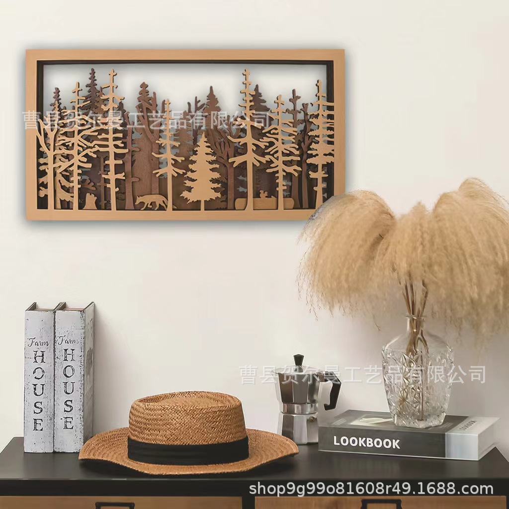 国境を越えた新型北米北欧森林木孤独装飾画フォレストWooden foxwallart木質