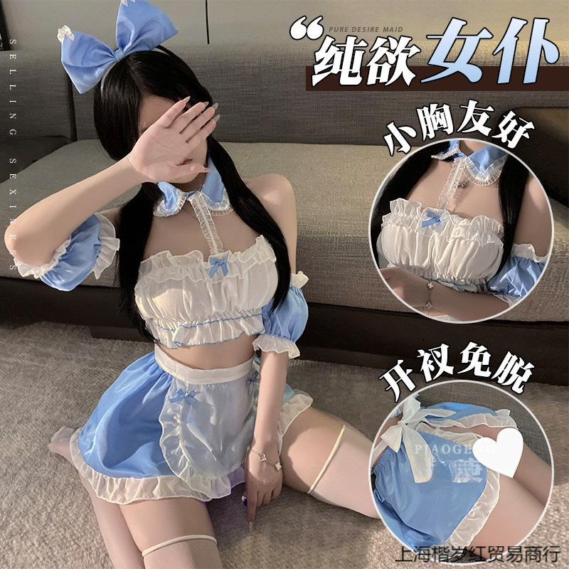 日系メイド服趣味下着女性セクシーコスプレ制服スーツ誘惑レース透視サスペンダースカート