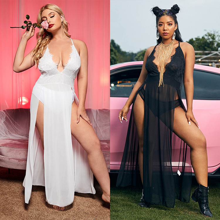セクシーな下着の寝衣の外国貿易のクロスボーダーのレースのスリットの網の糸の透明なセクシーな誘惑のセクシーな長いスカートの7642B