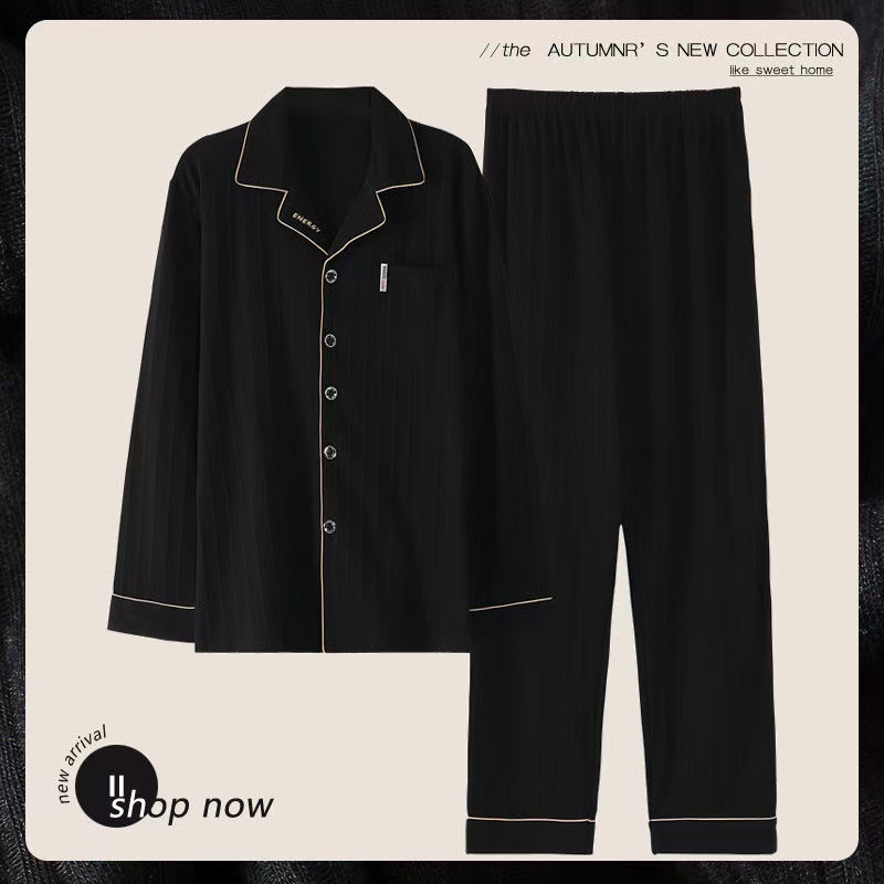 2025黒パジャマ男性春秋タイプ長袖長ズボンアイス新作男性三点セット高級感ホームウェア