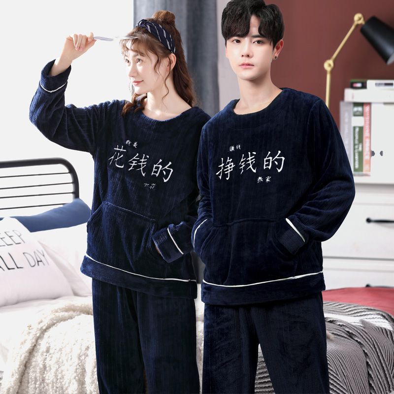 カップルパジャマ女性フランネル秋冬韓国版厚手保温男性冬コーラル長袖ホームウェア