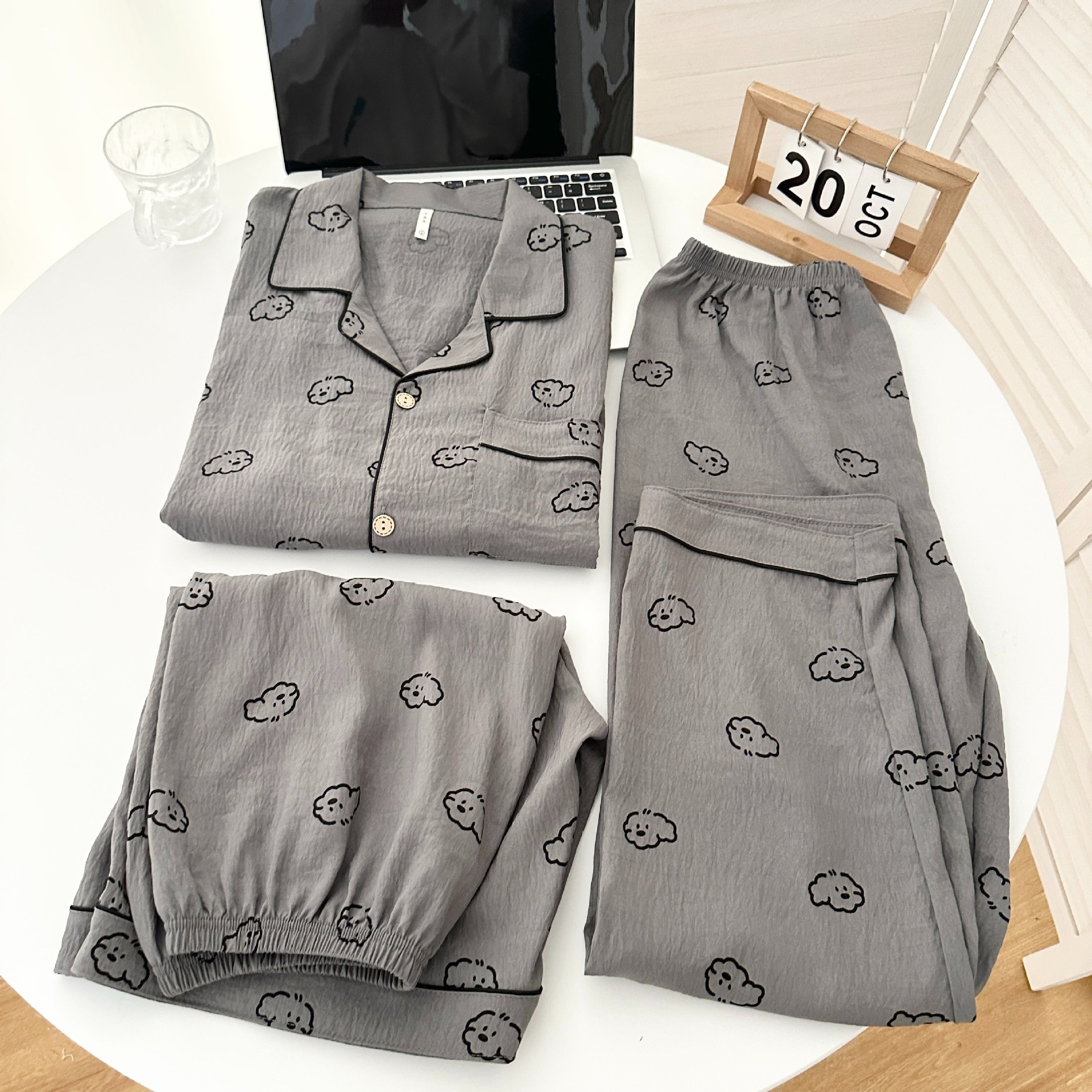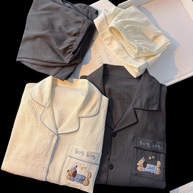 クロスボーダー卸売カップルクラウドコットンパジャマ女性の夏の新しいダックスフントカーディガン半袖ショーツメンズホームウェアセット