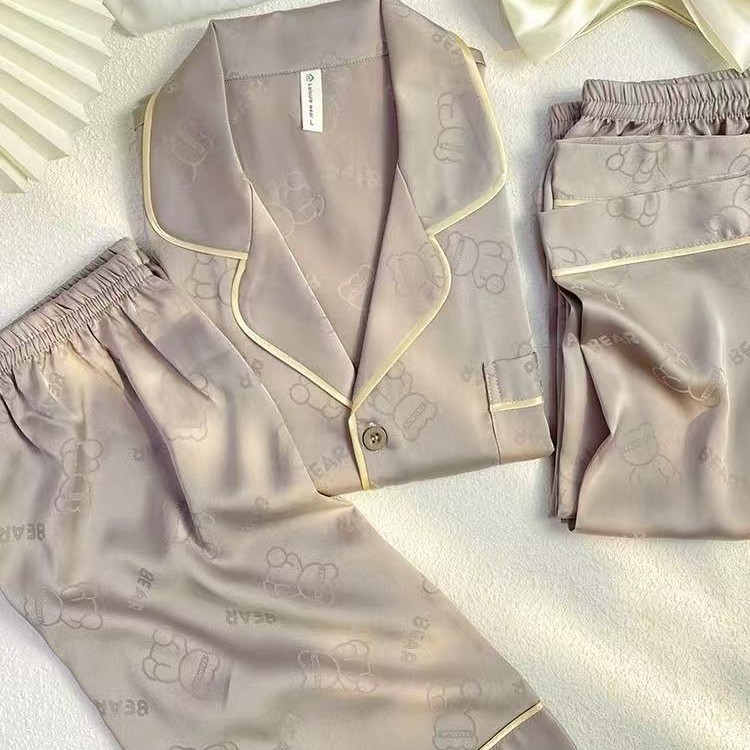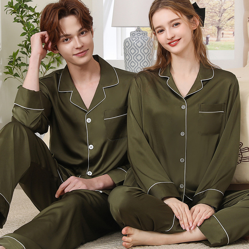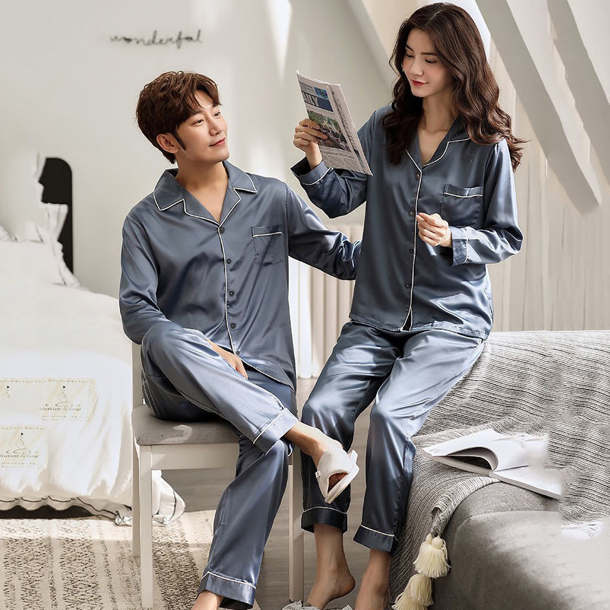 韓国カップルパジャマ女性春秋長袖氷糸夏薄手2025新型男性シミュレーションシルクルームウェア