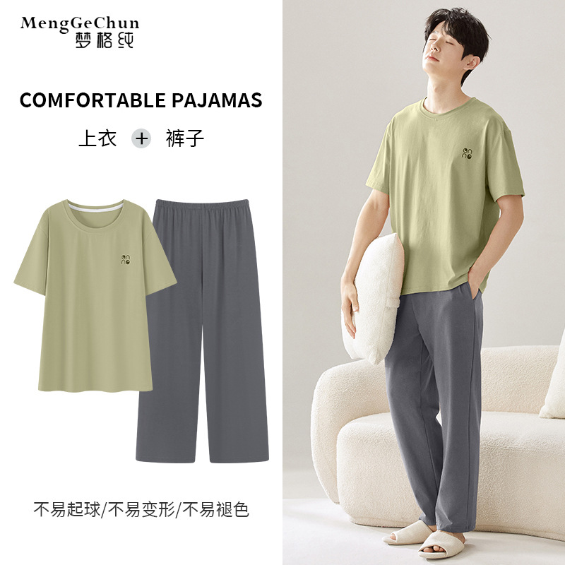 2025夏の新商品パジャマ男性綿質半袖セットカジュアル青年薄手家庭服セット外着アニメ