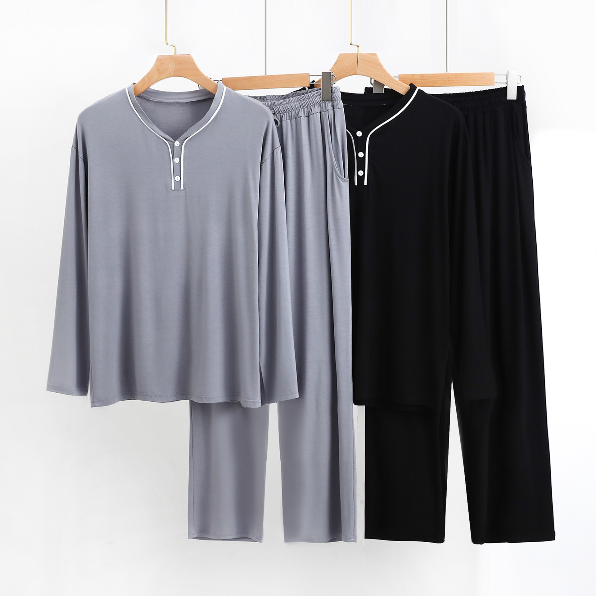 モーダルの家の服の2307大きいサイズの男性の半分はヘンリーのシャツのvネックの長袖のズボンのカジュアルなスーツを開けます。