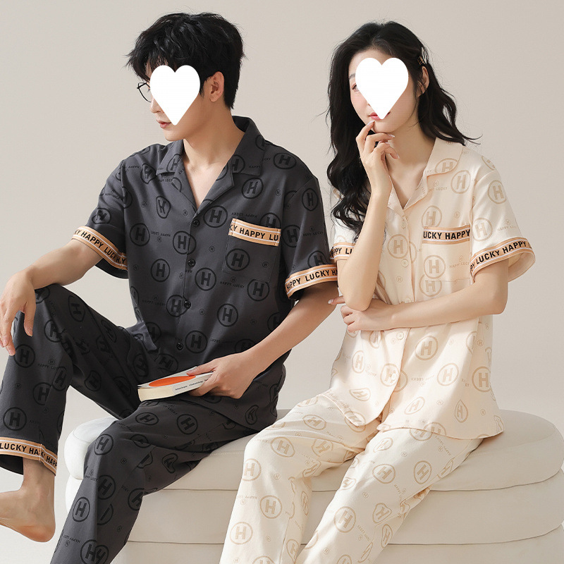 カップルパジャマ夏の純綿半袖ズボン 2025 新しいカーディガンハイエンド夏スタイル男性